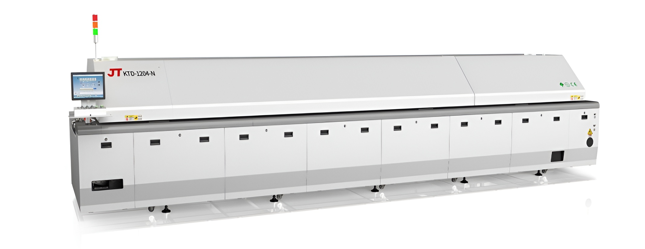 勁拓KT系列高端回流焊爐 ● 高產能低能耗,全新熱工學管理系統,有效降低成本 ● 專業應對高速生產及高精密度PCB封裝工藝 ● 控溫能力強,高控溫精度 ● 超強快速升降溫能力 ● 全程氮氣定量可控,各溫區獨立閉環控制 ● 最新冷卻技術,可選多區雙面冷卻 ● 新型二段式助焊劑回收系統 ● 雙軌雙速,單機成本,雙倍產能,節能65%。