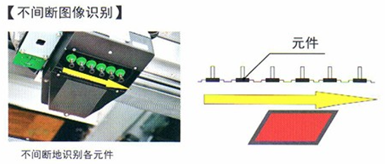 通過相機實現了高速無停頓圖像識別,對吸取的各個元件連續拍攝,實現了高速圖像識別。